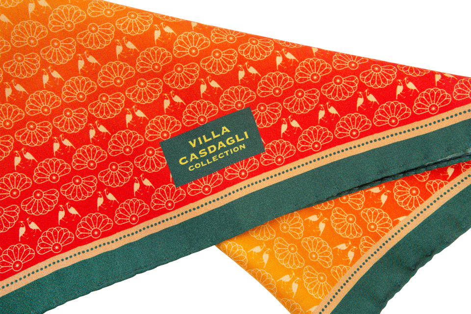 The Peacock Collection comprises a new collaboration cigar knife by Les Fines Lames, a pair of handmade sterling silver enamelled cufflinks by bespoke jeweller Vitaly Holstinin, colourful Italian made silk accessories for men and women and a porcelain ashtray. The new accessory collection draws inspiration from the gallant peacock tail shaped stained glass window adorning the grand reception room of the Villa Casdagli in Cairo.